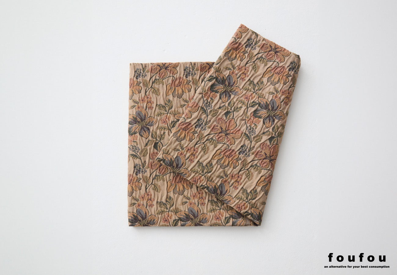 棚や机にかけるだけでも様になるジャガード生地"viatic"は、洋服はもちろん、トートバック等の小物制作などfoufou自らの原点でもある「ハンドメイド」でも愉しむことができ、生地の魅力をさらに身近に体感できる点が、ファブリック販売という本取り組みの醍醐味と考えております。
