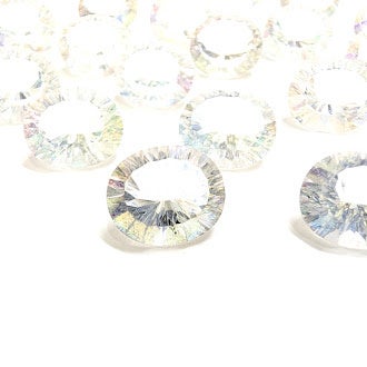 ミスティックトパーズとは、通常のトパーズにコーティングを施すことで、幻想的な色合いへと変化させたトパーズです。またコンケイブカット(宝石の面を円錐形にカットしたもの)という輝きが一層引き立つカットも施されており、今回のおすすめの一石となります。