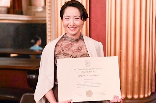 2024年 世界最難関・世界最古のGem-A(英国宝石学協会)が認定する宝石学資格、『FGA(Fellow of The Gemmological Association of Great Britain=英国宝石学協会特別会員)』を有する。