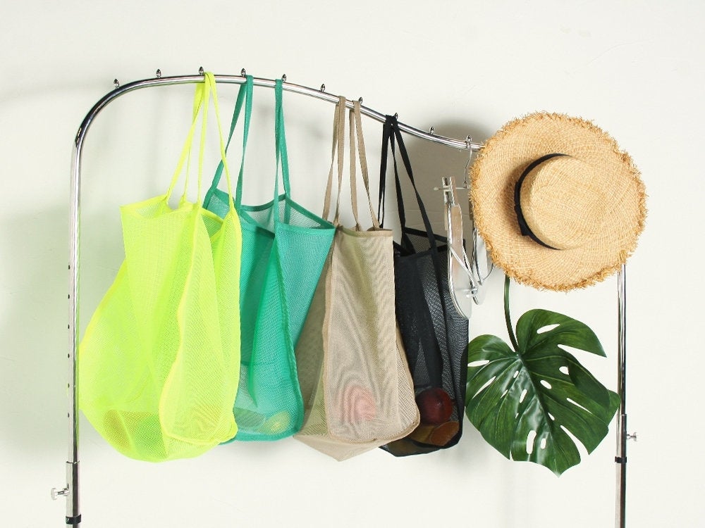 水着やビーチサンダル等、夏のレジャーに最適なメッシュバッグ。