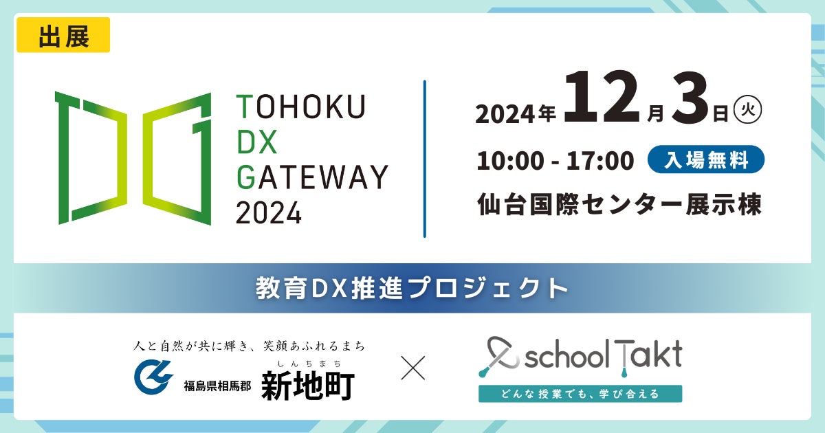 株式会社コードタクト(本社:東京都渋谷区、代表取締役:後藤 正樹、以下「当社」)は、当社スクールタクトの導入自治体である福島県相馬郡の新地町教育委員会と、自治体向けDX展示会「TOHOKU DX GATEWAY 2024」にブース出展します。