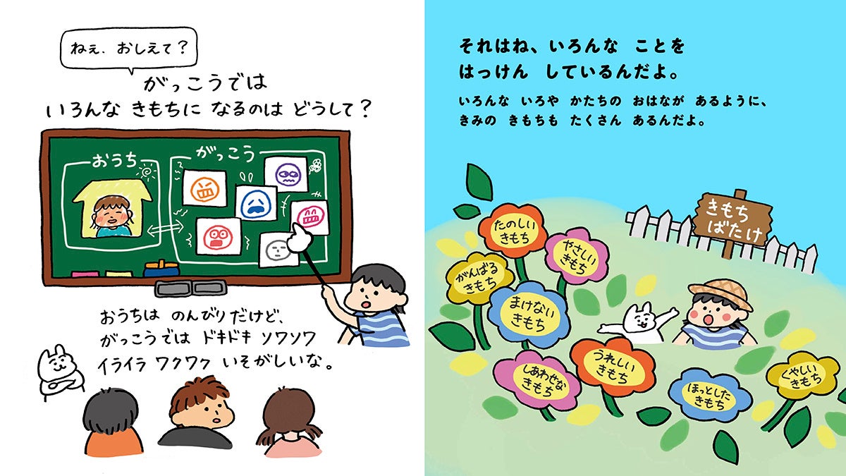 学校へのネガティブな気持ちをどう受け止めたらよいか、大人からうまく伝えにくいことも、妖精うさおがやさしく向き合います。