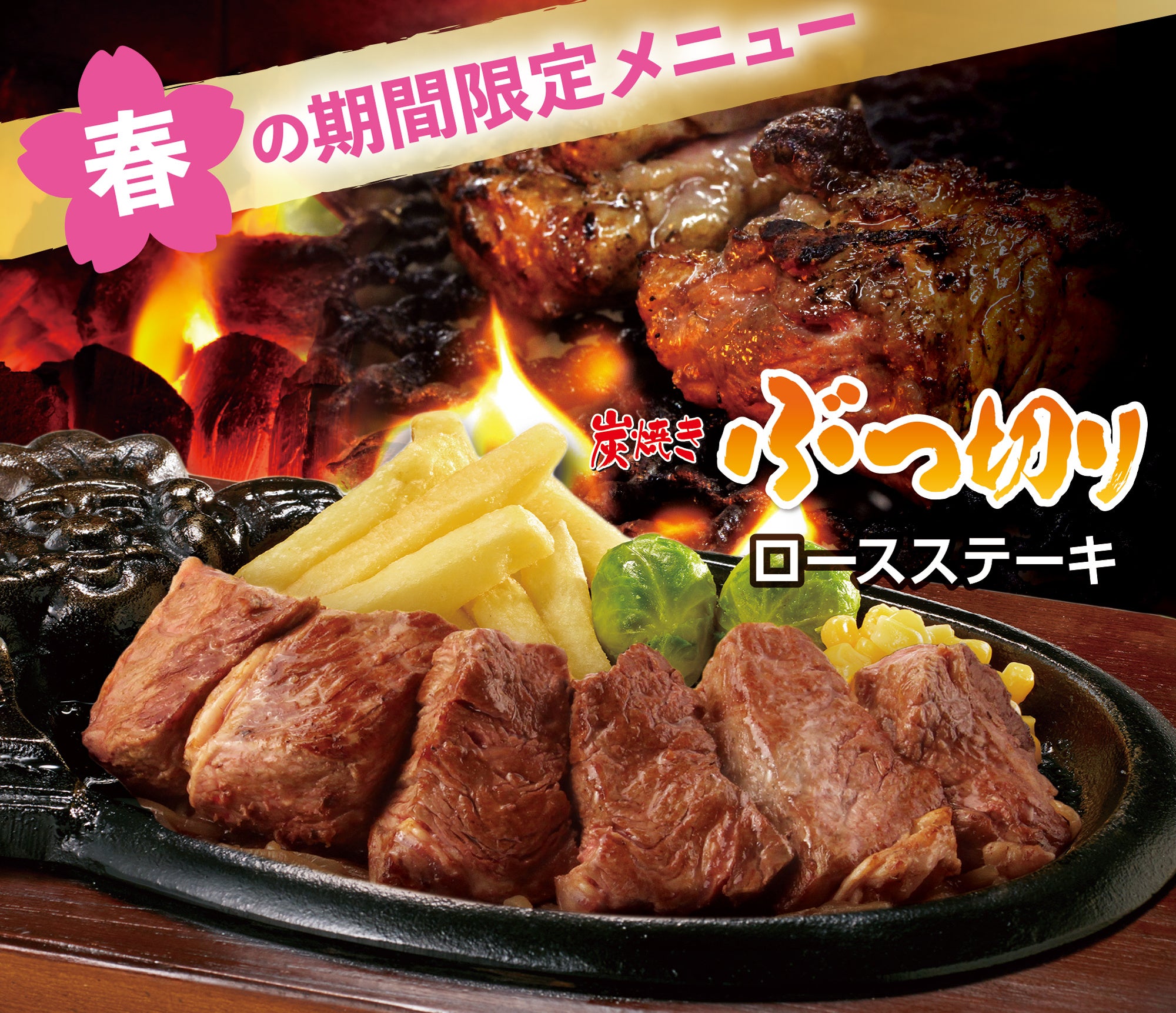 お祝いゴトや春の楽しい集いに ブロンコビリーで希少でリーズナブルなステーキを!期間限定『炭焼きぶつ切りロースステーキ』を2月24日(金)よりスタート