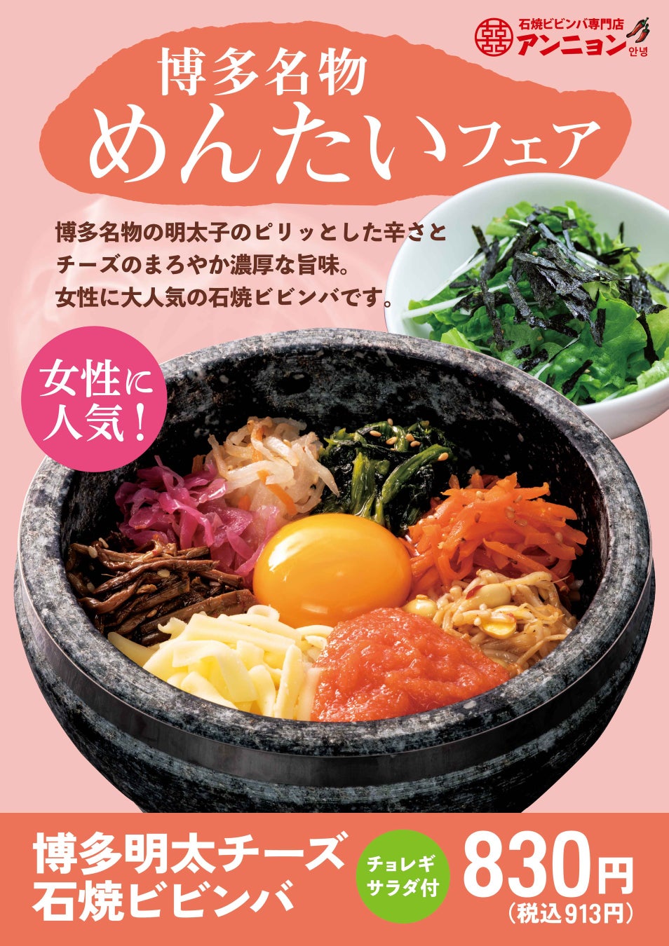 石焼ビビンバ専門店「アンニョン」薄ピンクの色合いが春に映える!「博多明太チーズ石焼ビビンバ」!