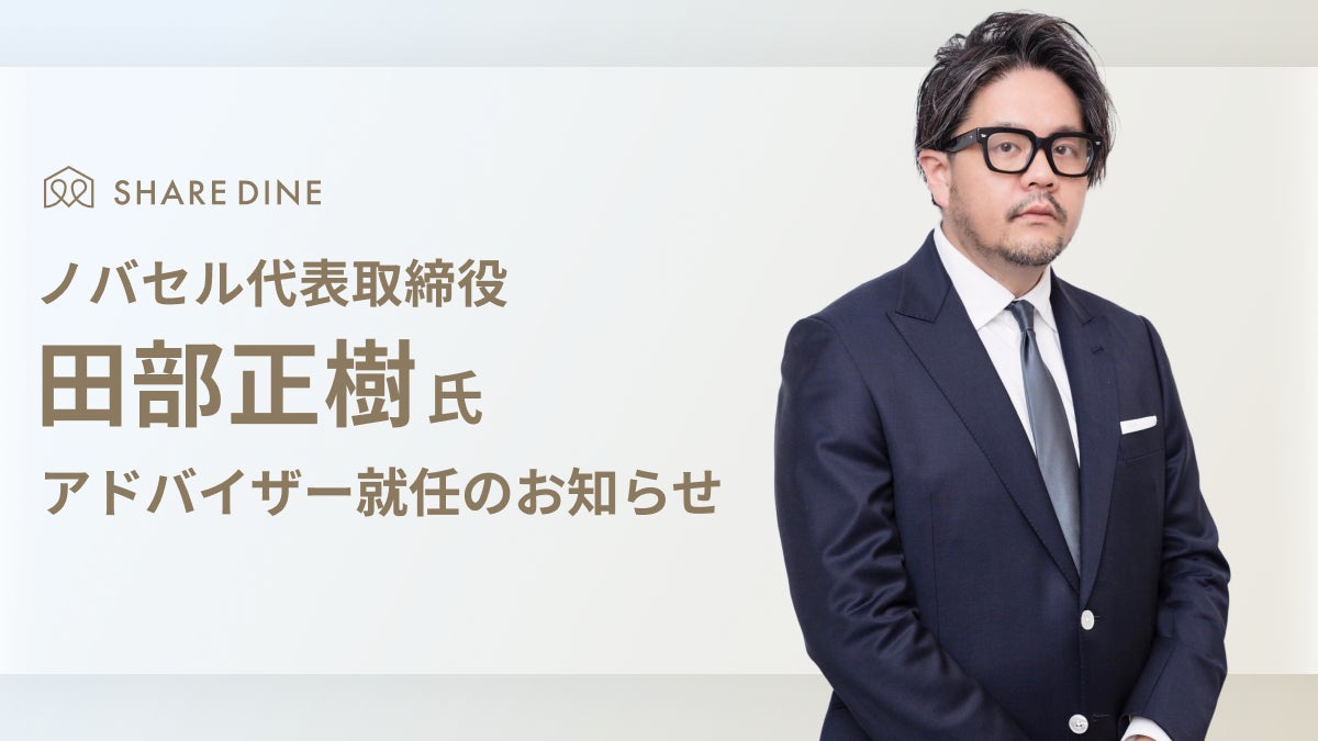 シェアダイン、新アドバイザーにノバセル田部正樹氏を迎え、成長戦略を強化