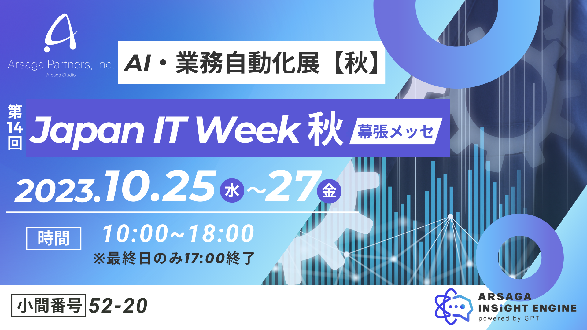 アルサーガ、10/25(水)~27(金)開催「第14回 Japan IT Week 【秋】」AI・業務自動化展へ出展