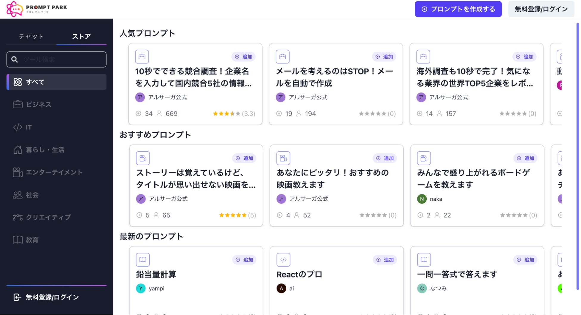 アルサーガパートナーズは、ユーザーに最適なプロンプトが見つかる・作れる・シェアできるサービス「プロンプトパーク」を提供しています。