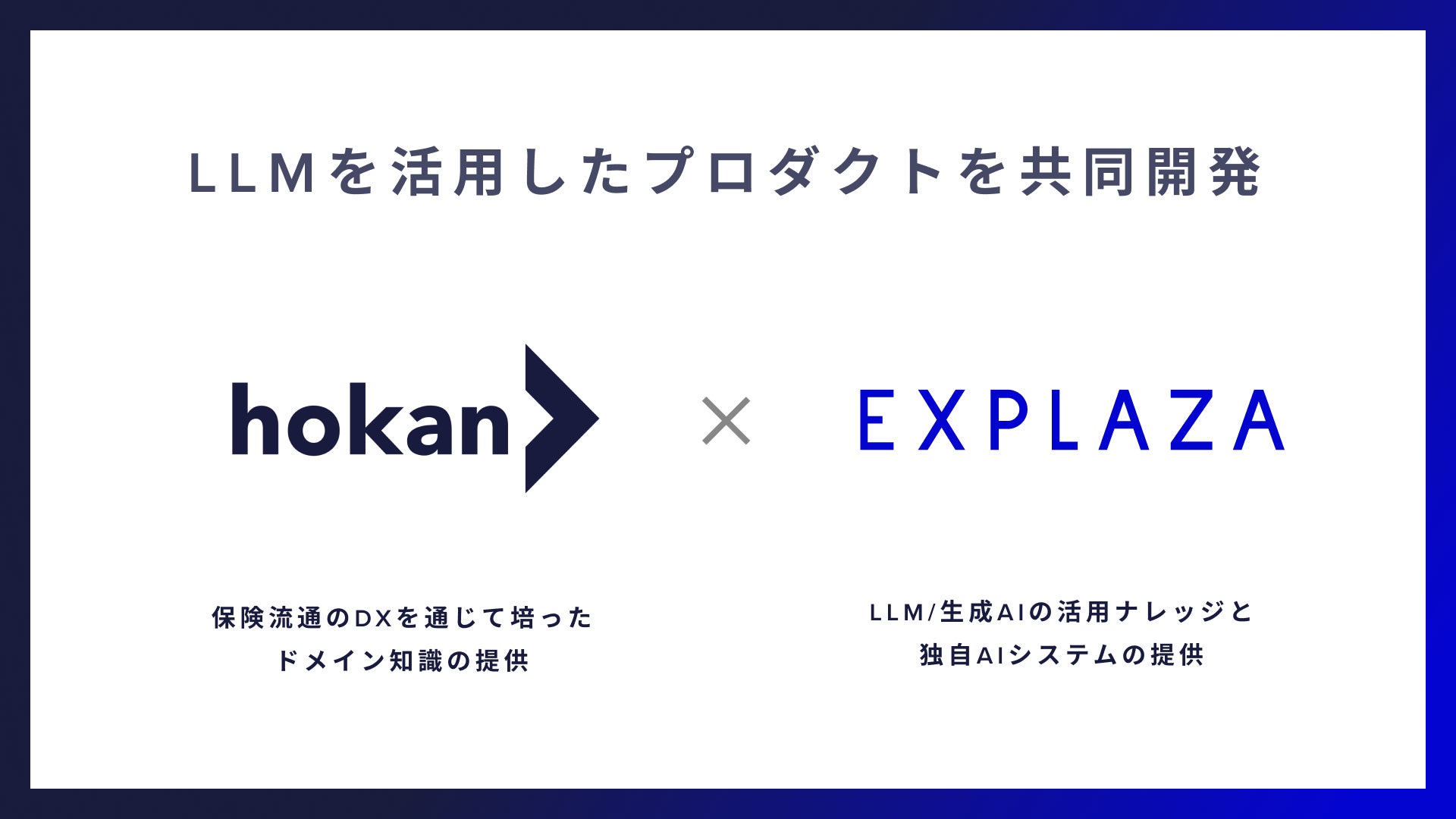 株式会社hokanと株式会社エクスプラザ、保険業界向けにLLMを活用したプロダクト開発を共同で開始