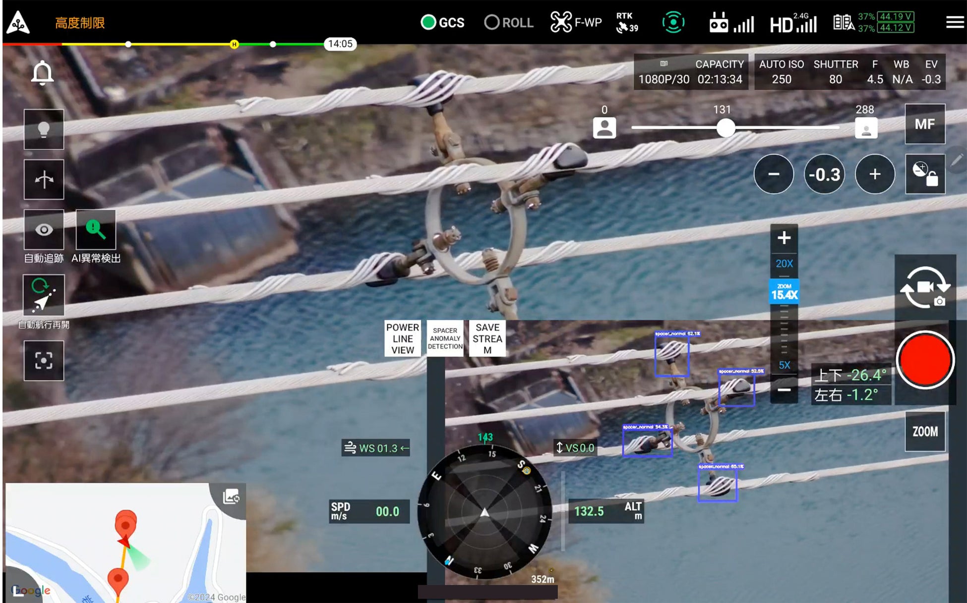 公衆保安確保の観点から、第三者に対し災害の発生する恐れのある異常は早急に発見する必要があります。これまで、手元のモバイルデバイスに伝送されるドローンのリアルタイム映像(ライブストリーム映像)をもとに、「電線」の素線切れ・溶損や、「がいし」の破損・欠けといった異常をリアルタイムに検出するAIを開発し、2023年度からすでに現場運用を開始しておりますが、今回、新たに電線付属品である「ダンパ」※1の重錘脱落や、「スペーサ」※2の把持部外れ等をリアルタイムに検出するAIを開発しました。