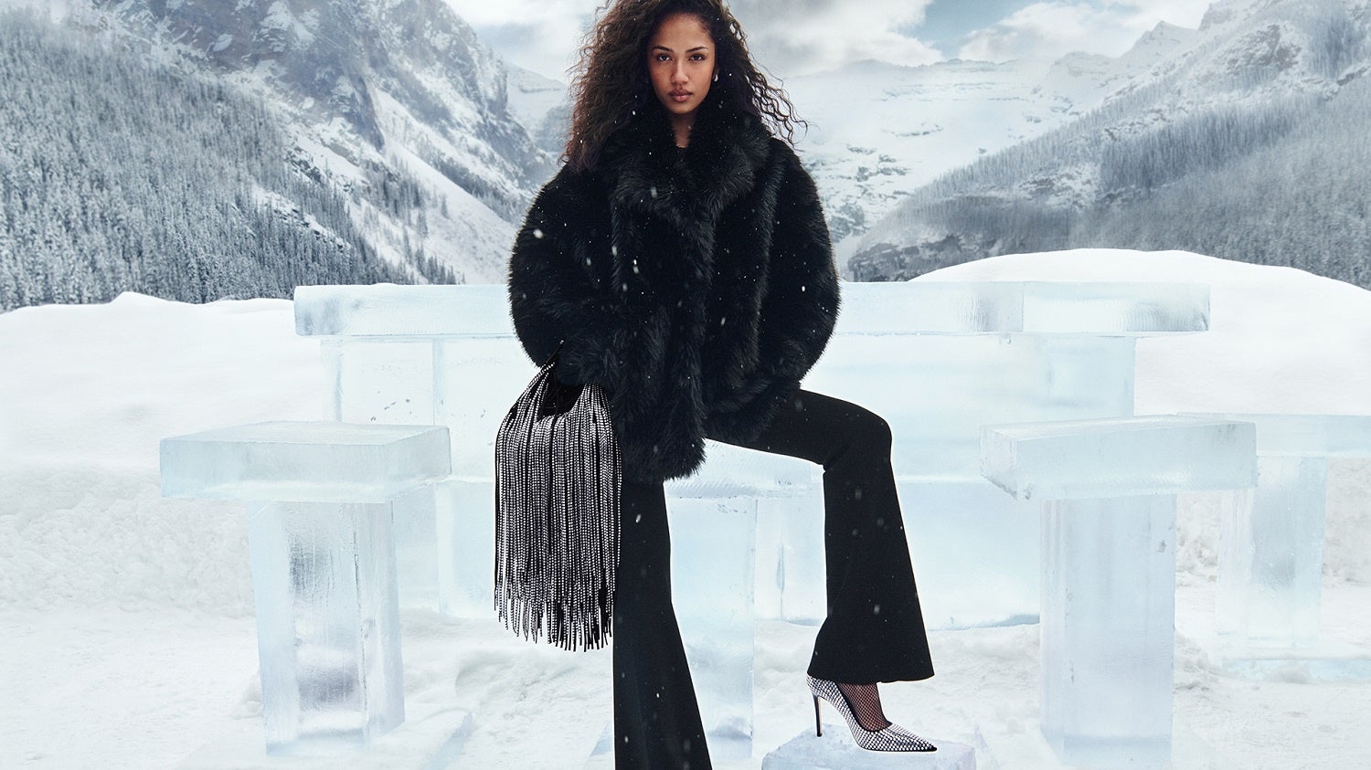 息をのむような景観や活気あふれるaprès-ski(スキーを楽しんだ後の社交・娯楽の時間)のムードに着想を得たビジュアルとスタイリングは、山岳リゾートでのホリデーにふさわしい印象的な装いと祝祭のムードを余すところなく表現しています。レイク ルイーズ スキーリゾートの雄大なゲレンデからフェアモント・シャトーのにぎやかなバーまで、ウィンター仕様のレディトゥウェアと心地よいアクセサリーが主役となり、それぞれのシーンに命を吹き込んでいます。ブランドを象徴するバッグ 「ノリータ」や「ハミルトン・モダン」、そして「レイラ」や「ダコタ」は、ソフトなフェイクファーやメタリックシルバー、スタッズ付きスウェードなど、ホリデーシックな素材で彩られ、存在感を放ちます。