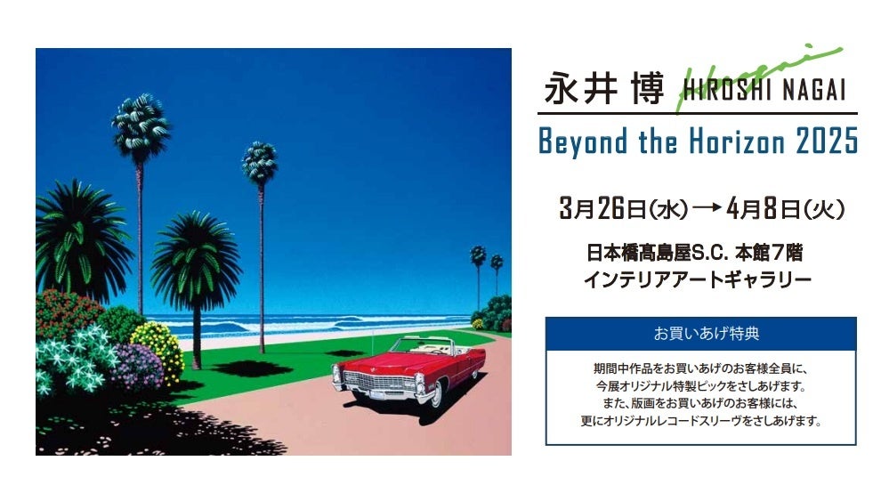 【日本橋高島屋 本館7階 インテリアアートギャラリー】『永井博 版画展2025 -Beyond the Horizon -』3/26(水)~。真っ青な水平線の先に、新たな未来への冒険が始まる。