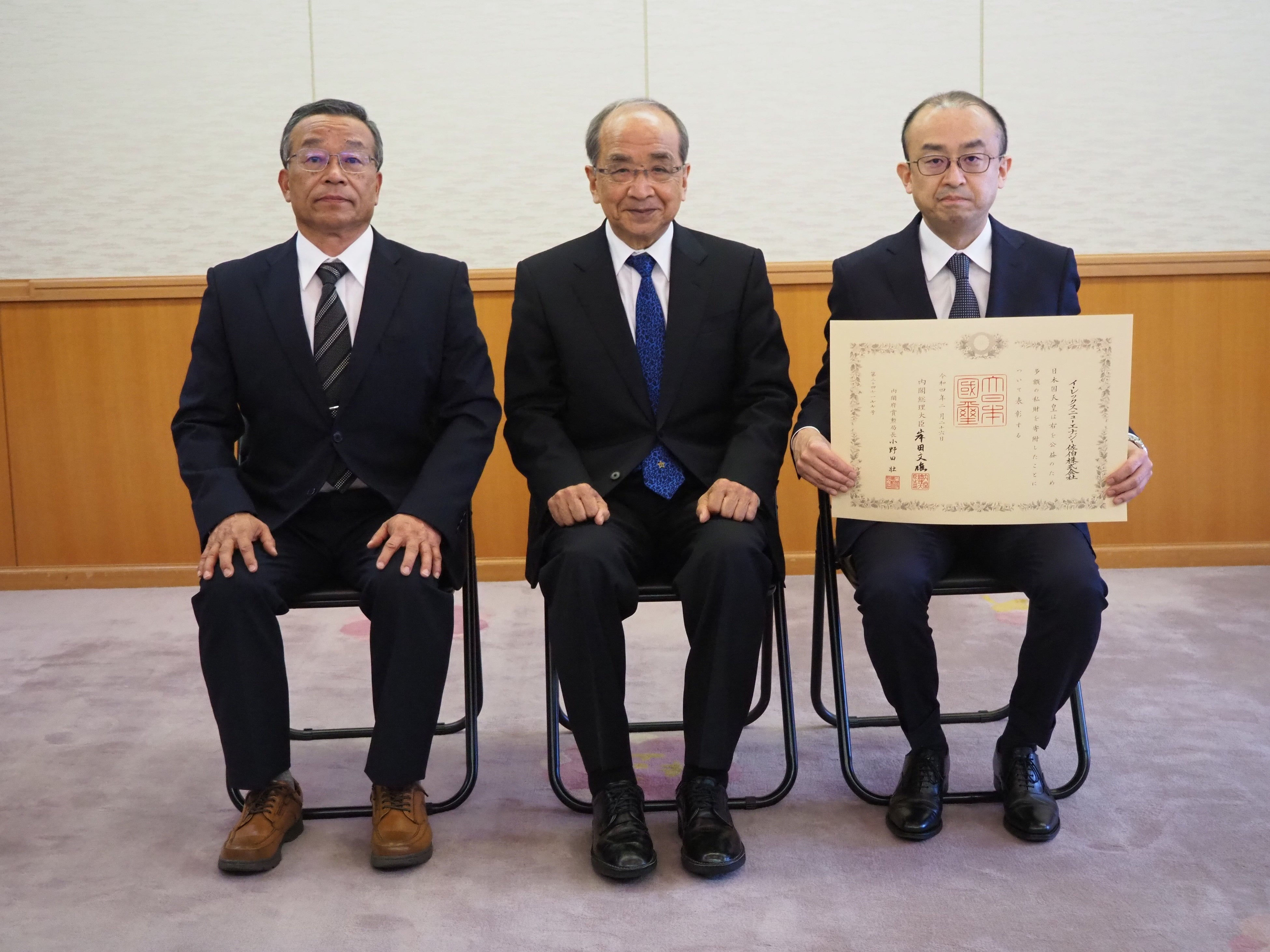 イーレックスグループは、当社発電所所在地の子育て支援や文化の発展を願い、2020年に開館した佐伯市の施設である「さいき城山桜ホール」企画運営費として1,000万円を寄付いたしました。その功績が認められ、今回の受章に至りました。伝達式は2022年4月25日大分県庁にて執り行われました。
