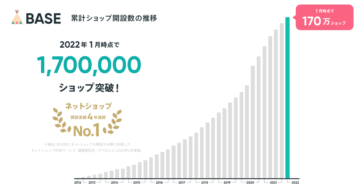 「BASE(ベイス)」のネットショップ開設数が170万ショップを突破
