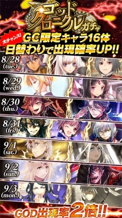 【アルテイルクロニクル】お好きなGC限定キャラを狙う大チャンス!新要素も!日替わりで出現確率UP!「ゴッドクロニクルガチャ」実施!