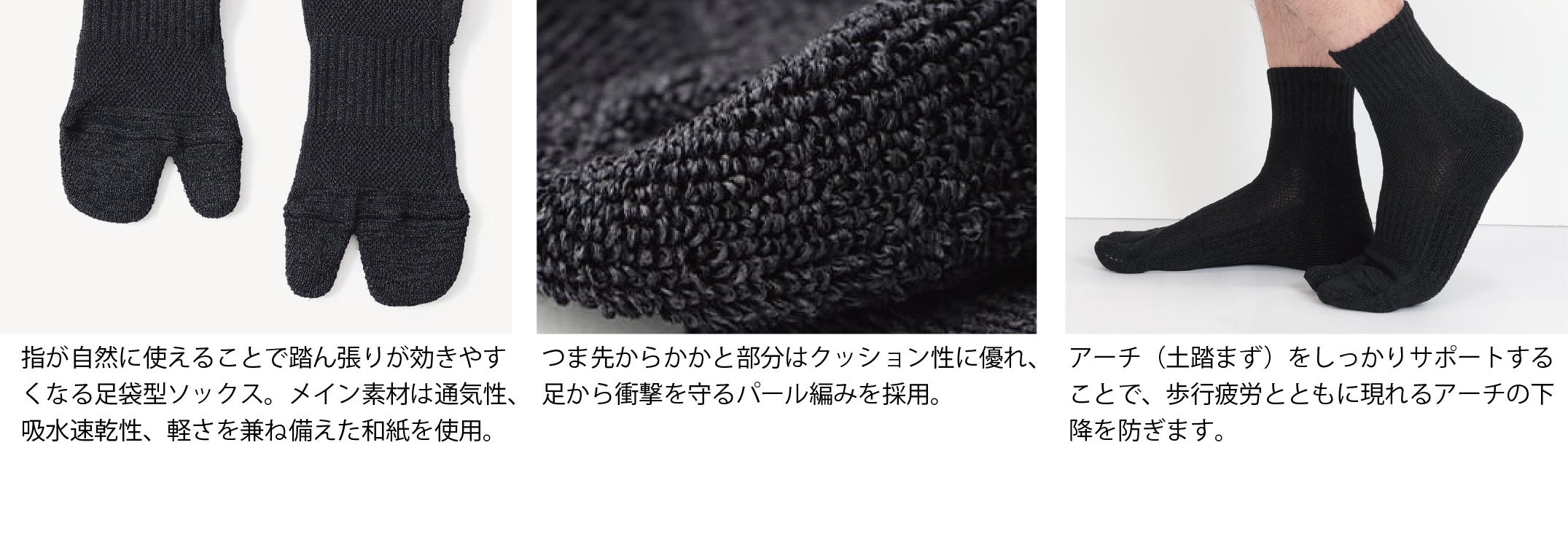 春~夏の低山を快適に過ごせる和紙糸足袋パイル編みソックス。