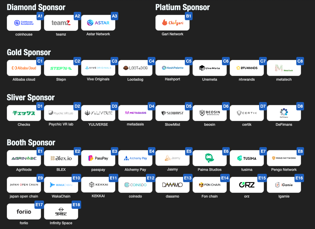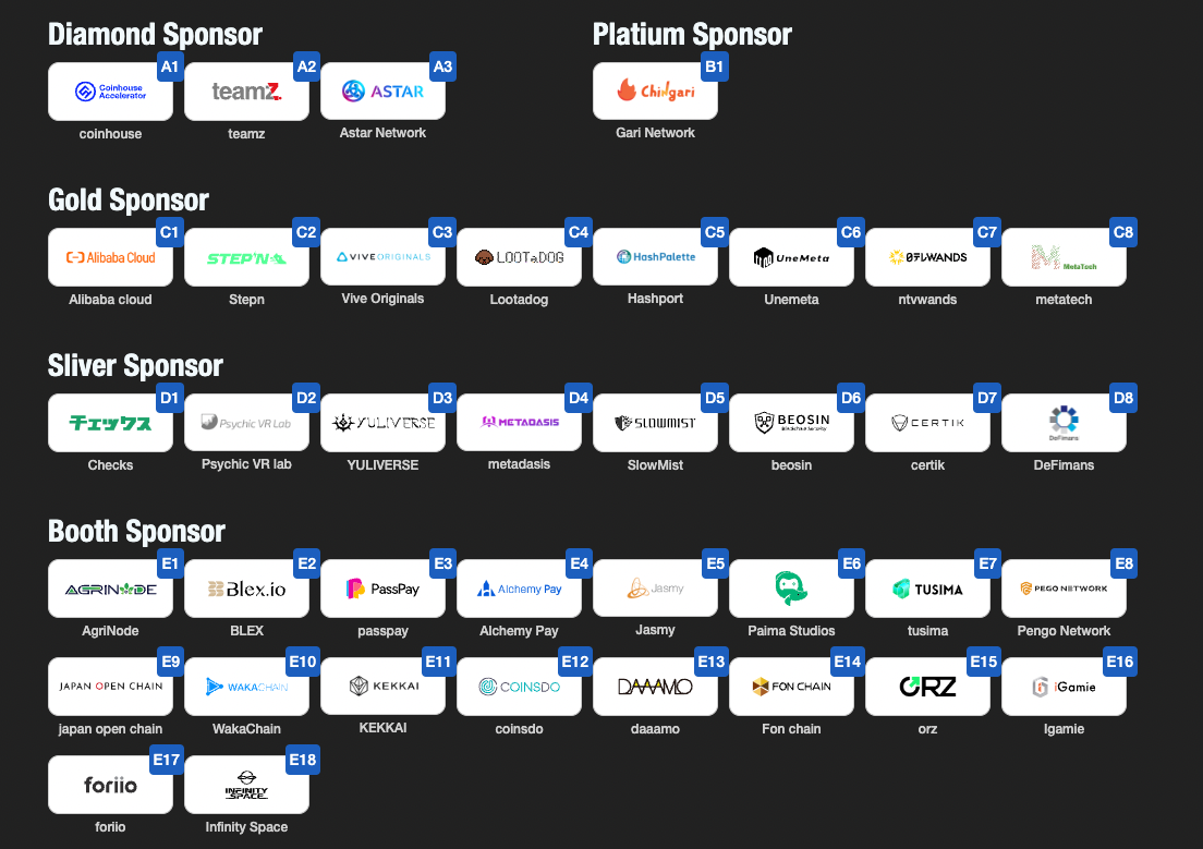 世界中からWeb3業界のトップスピーカー96名、VC&投資家約20社、協賛企業68社に加え、主要メディア32社、コミュニティパートナー45社が集結し、グローバルに注目を集めるイベントとなっているため、是非会場でWeb3業界が作り出す未来を体感して頂きたい。