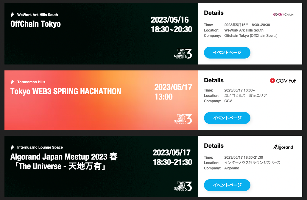 同時開催されるTokyo Web3 Week(5月15日〜21日)のサイドイベント開催も続々と決定しており、この1週間は東京でのWeb3市場が大きく盛り上がることが見込まれる。