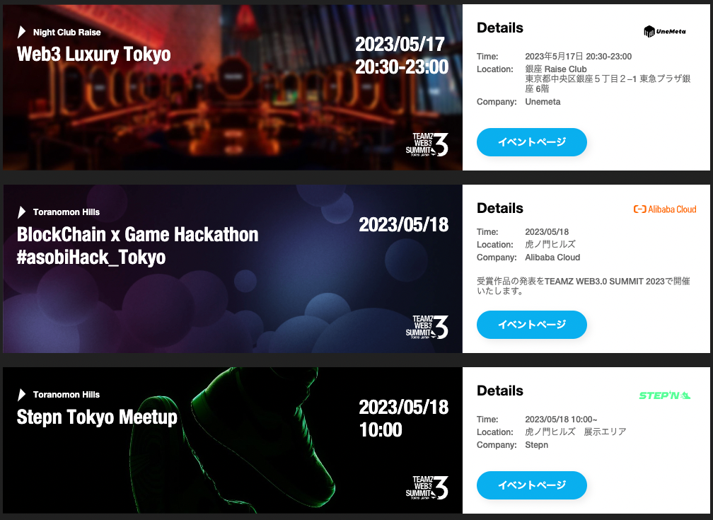 なお主催の株式会社TEAMZは一緒にTOKYO Web3 Weekを盛り上げていくコラボイベントを募集中であるため、興味のある企業プロジェクトは公式ホームページのコンタクトフォームより参加申請が可能である。