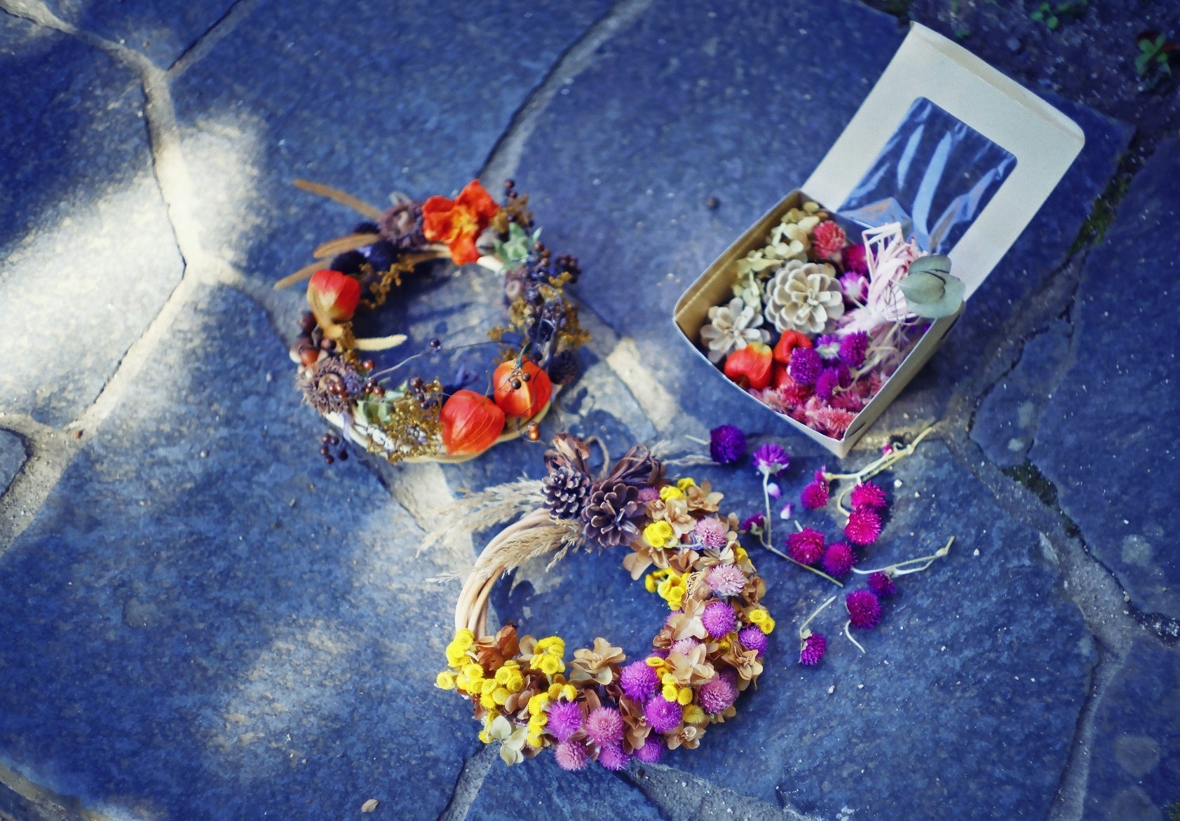 ハーブ園収穫のドライフラワーを選び放題!神戸布引ハーブ園、秋の特別限定企画「リースキット販売 -自然の恵みを暮らしのアイテムに-」。ご自宅で、お好きな花材で、リースづくりをお楽しみいただけます。