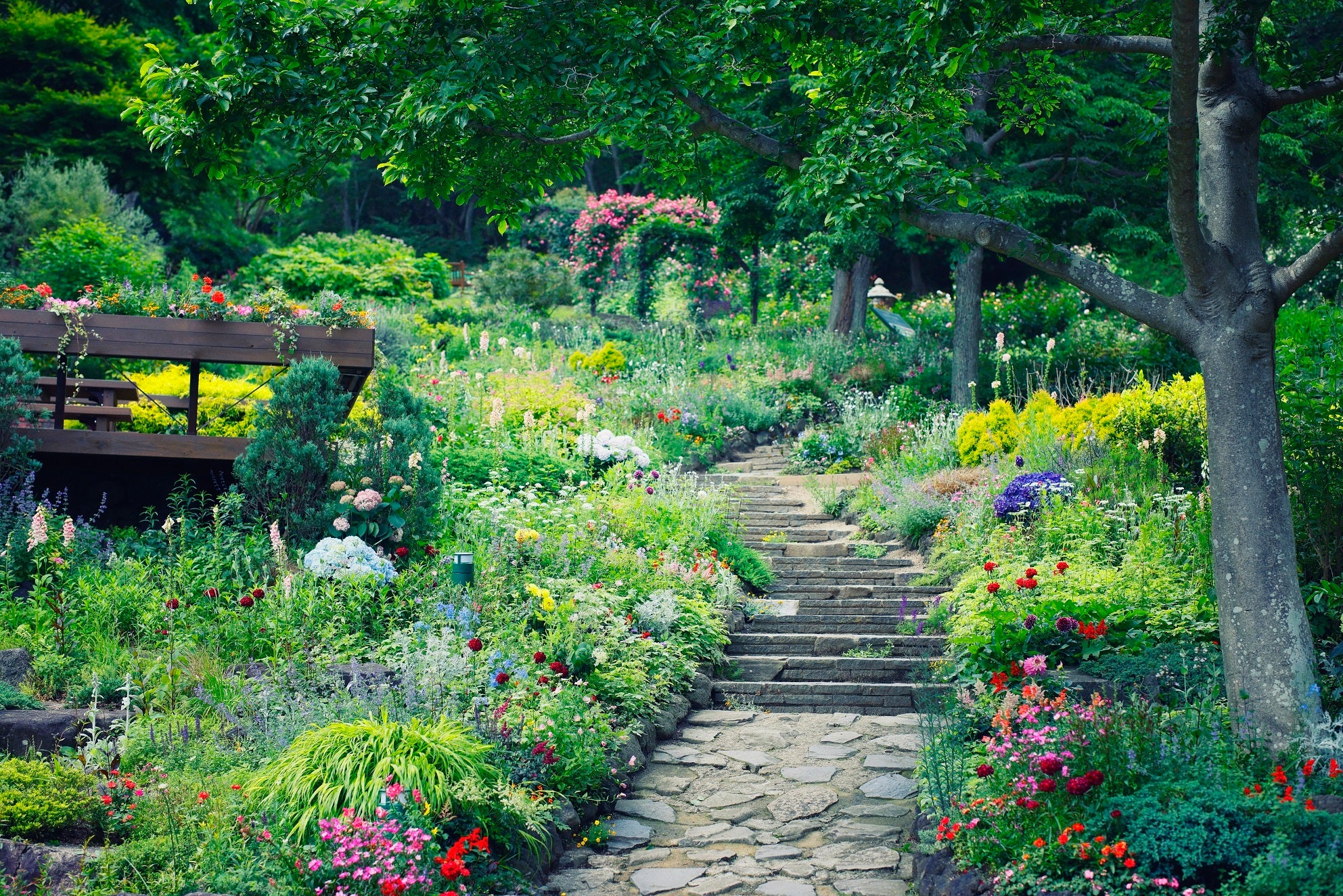 四季折々約200種75,000株のハーブや花々がお出迎えします。