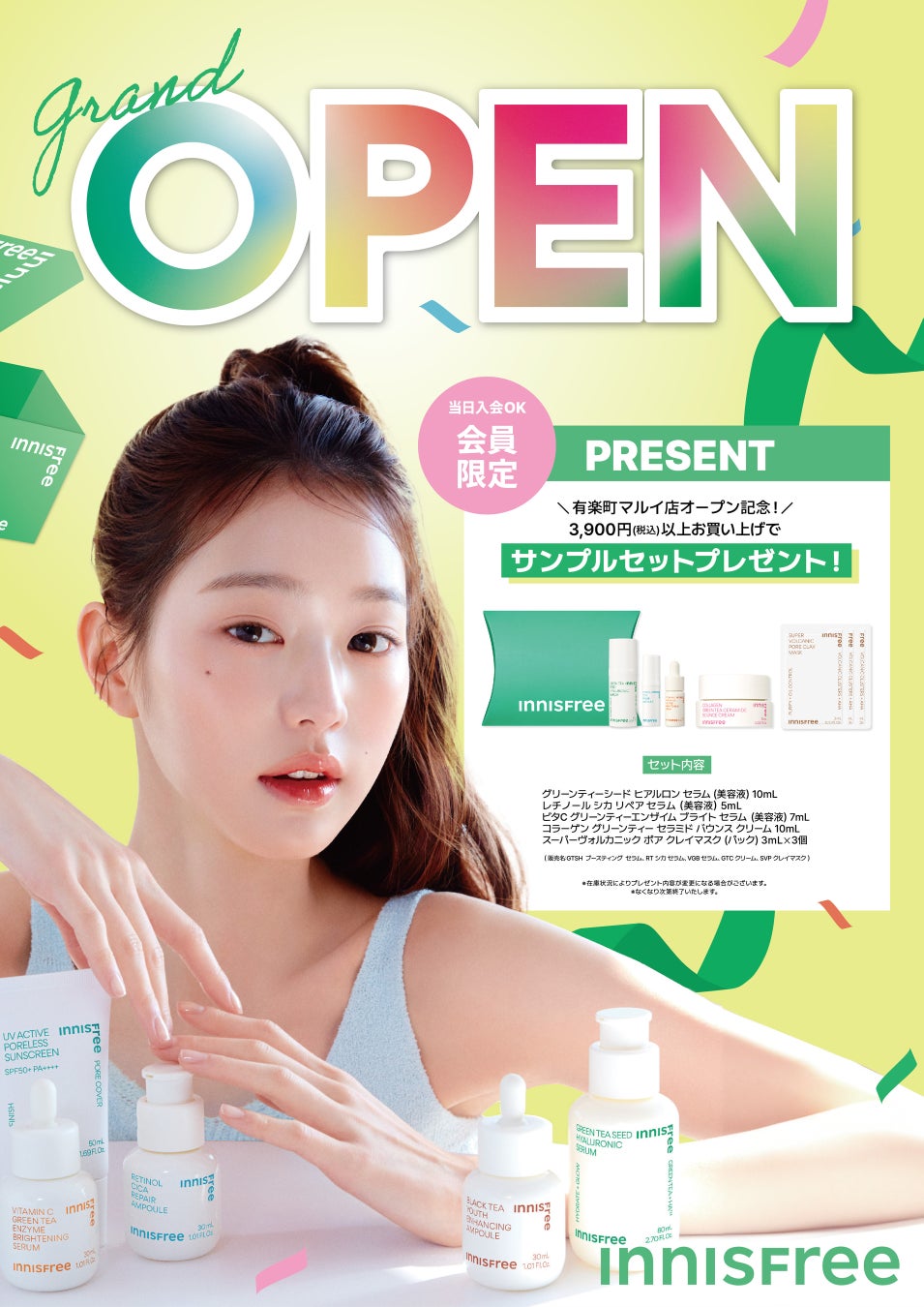 「イニスフリー 有楽町マルイ店」では、オープンを記念してキャンペーンを開催。