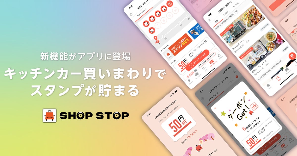 日本最大級のモビリティビジネス・プラットフォーム「SHOP STOP」を展開する株式会社Mellow (本社:東京都千代田区 代表取締役社長:石澤 正芳、以下「メロウ」)は、キッチンカーの出店情報を検索できる「SHOP STOP」アプリに、3月20日より出店キッチンカーで使えるスタンプカード機能を追加しました。キッチンカーでの購入によってスタンプを貯め、お得なクーポンを入手することができます。この新機能により、顧客とキッチンカーの関係性をより深めることができます。