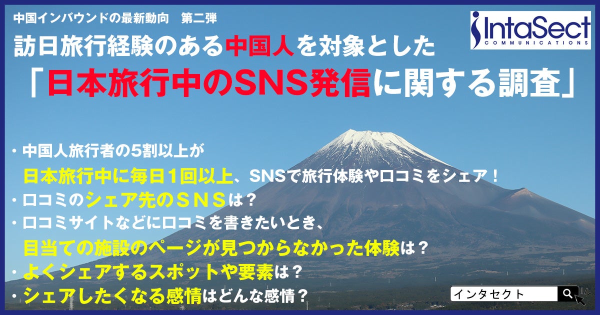 <中国インバウンドの最新動向 第二弾>インタセクト、訪日旅行経験のある中国人を対象とした「日本旅行中のSNS発信に関する調査」の結果を発表