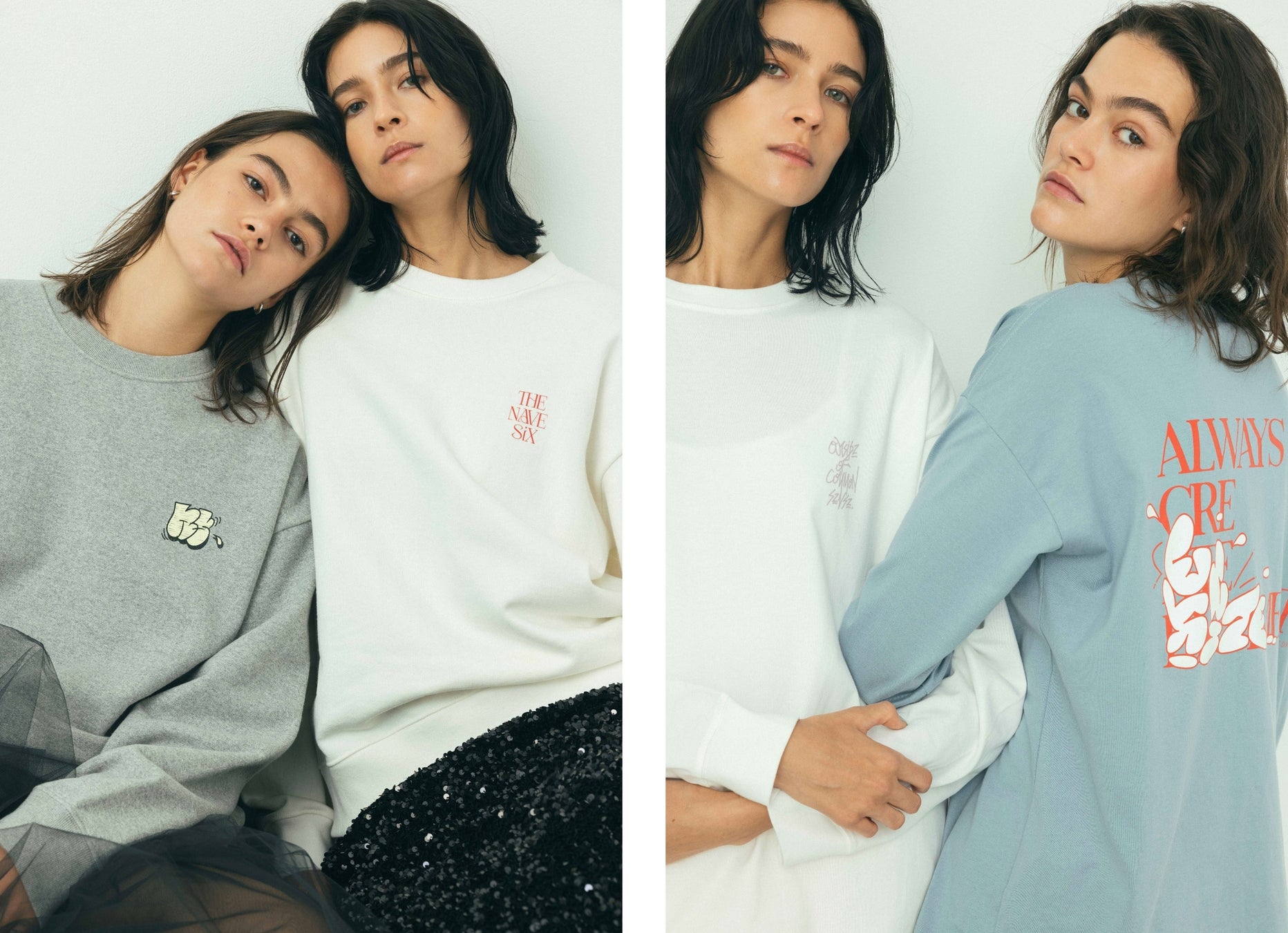 今回は、新進気鋭のグラフィックデザイナー「SiX SENCE RECORD」とコラボレーションし、シティムード漂う、オトナが楽しめるグラフィックアイテムを制作しました。今秋冬シーズンのトレンドである着映えボトムスにもぴったりなロングスリーブTシャツやスウェットなど全4型を展開します。各アイテム、カラーごとにグラフィックも異なりバリエーションに富んだラインナップです。