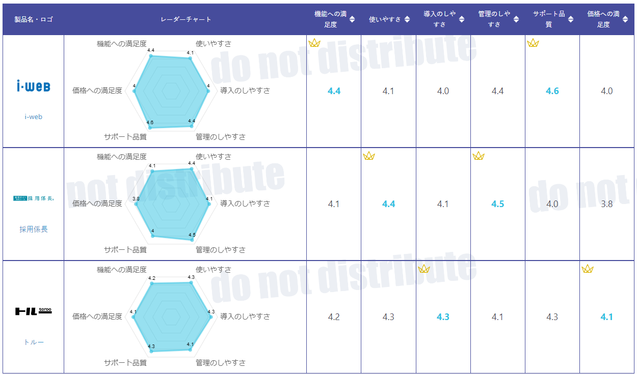 ■ 採用サイト作成ツールの評価公開 採用係長、トルー、i-webの評価を可視化