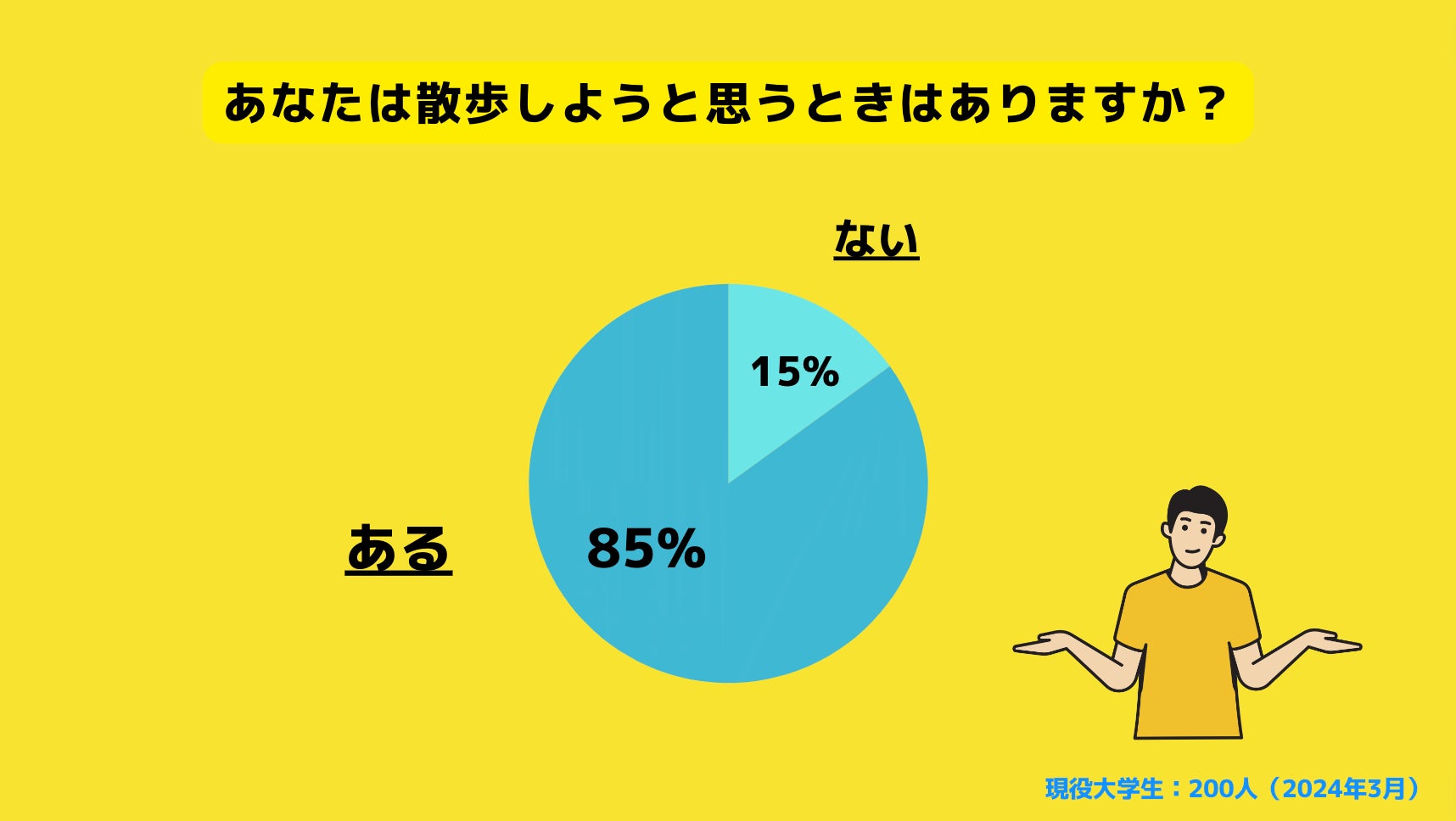 大学生の85%が散歩しようと思うときがあると回答しました。