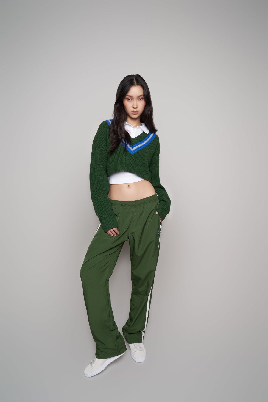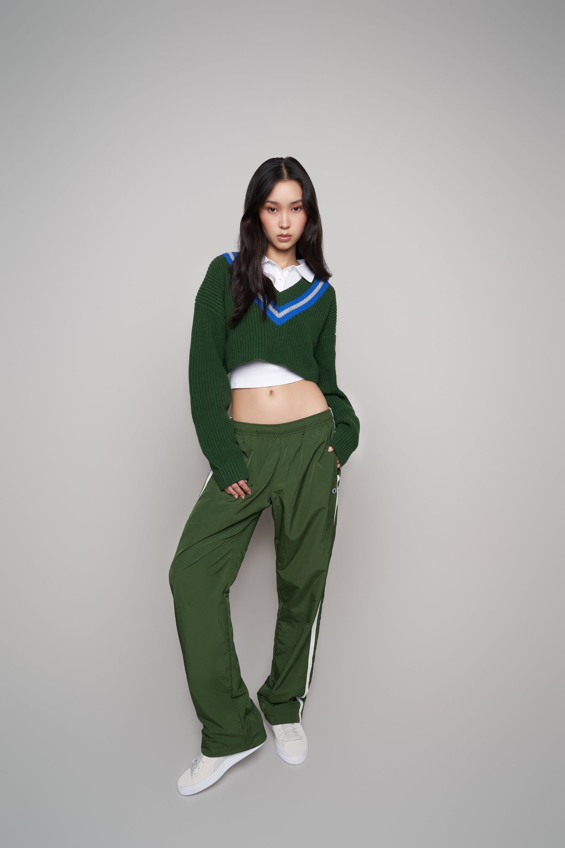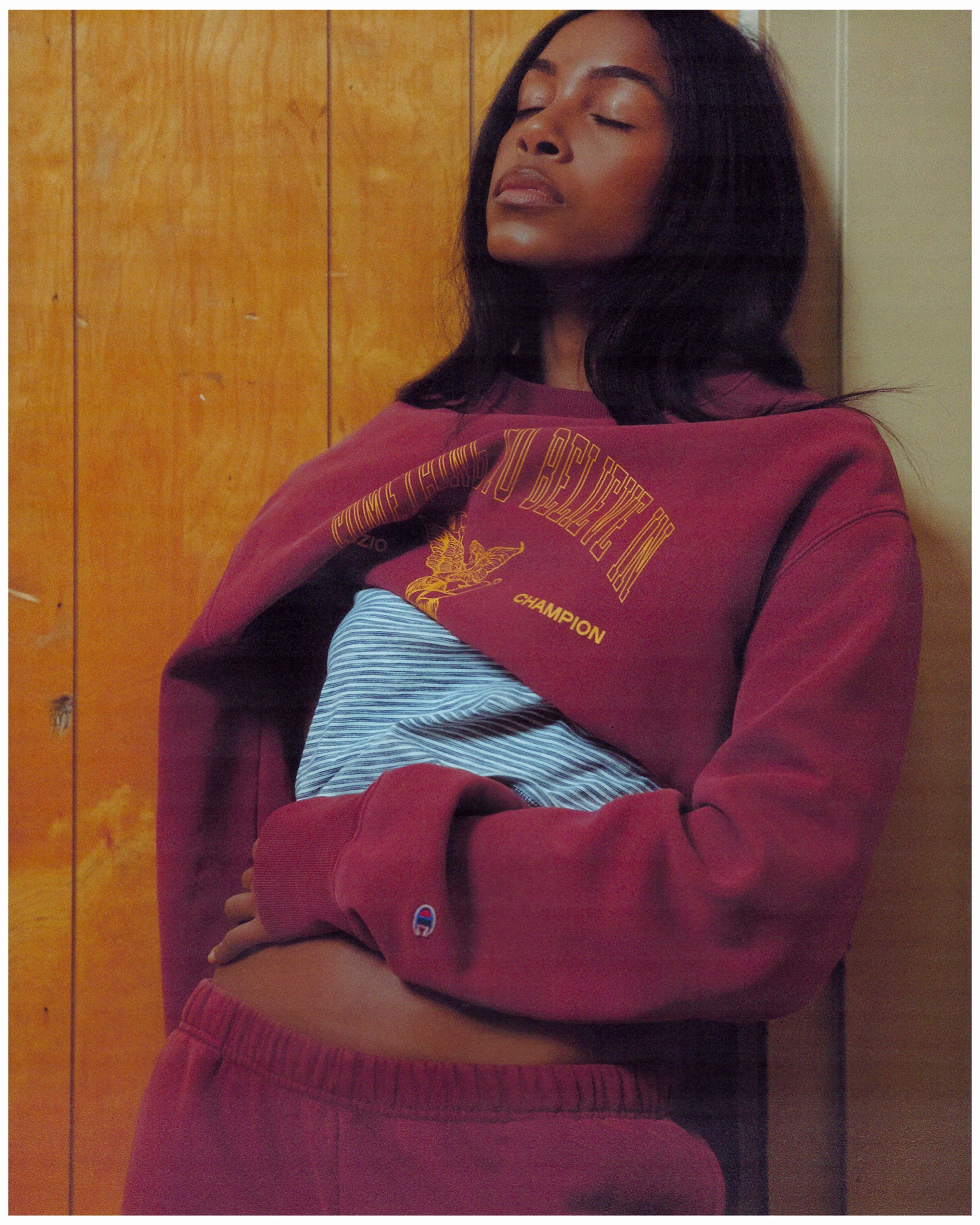 Guizioが手がける女性らしいシルエットのデザインは、世界的に著名なセレブリティやインフルエンサーから広く支持されております。本コレクションは、彼女のヴィンテージとトレンドをミックスしたデザインとChampionのスポーティなDNAが融合し、誕生したコレクションです。クラシックでスポーティーなシルエットをベースに、ヴィンテージ感のあるバーシティスタイルを取り入れたコレクションは、スウェットシャツ、ニットカーディガン、クロップドラグビーロングスリーブシャツ、ウォームアップフルジップジャケットとパンツ、トラックパンツなどアイコニックなアイテムを全11型を展開いたします。