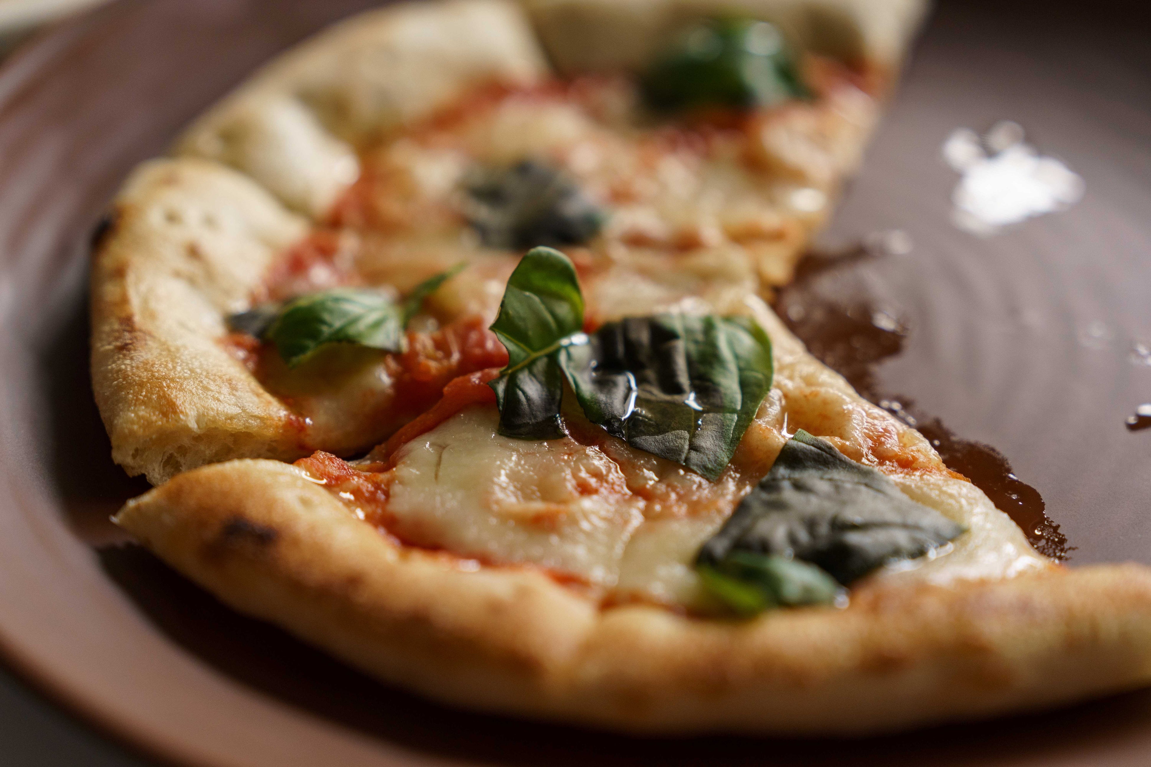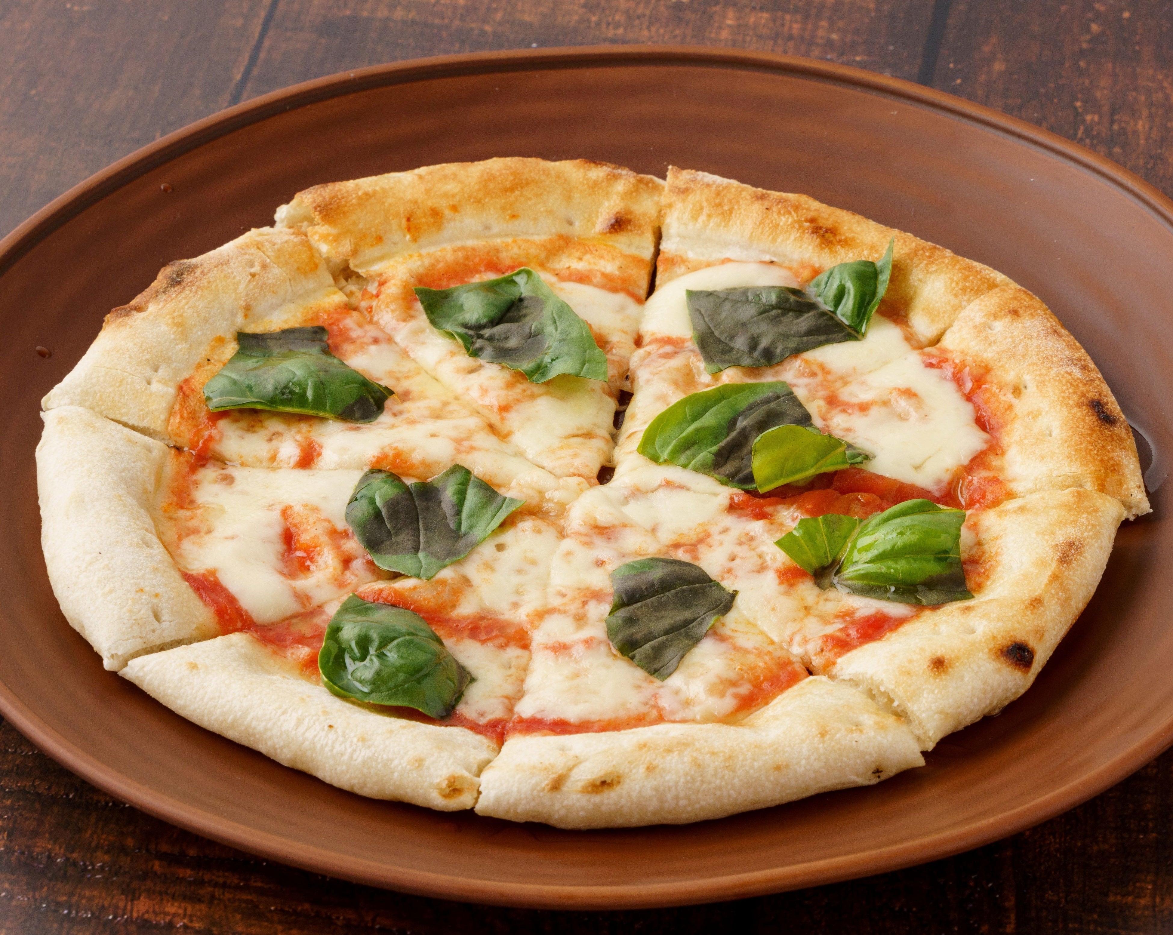 ナポリの伝統的な製法で作ったピザ生地に、イタリア直輸入のモッツァレラチーズを使ったマルゲリータ。