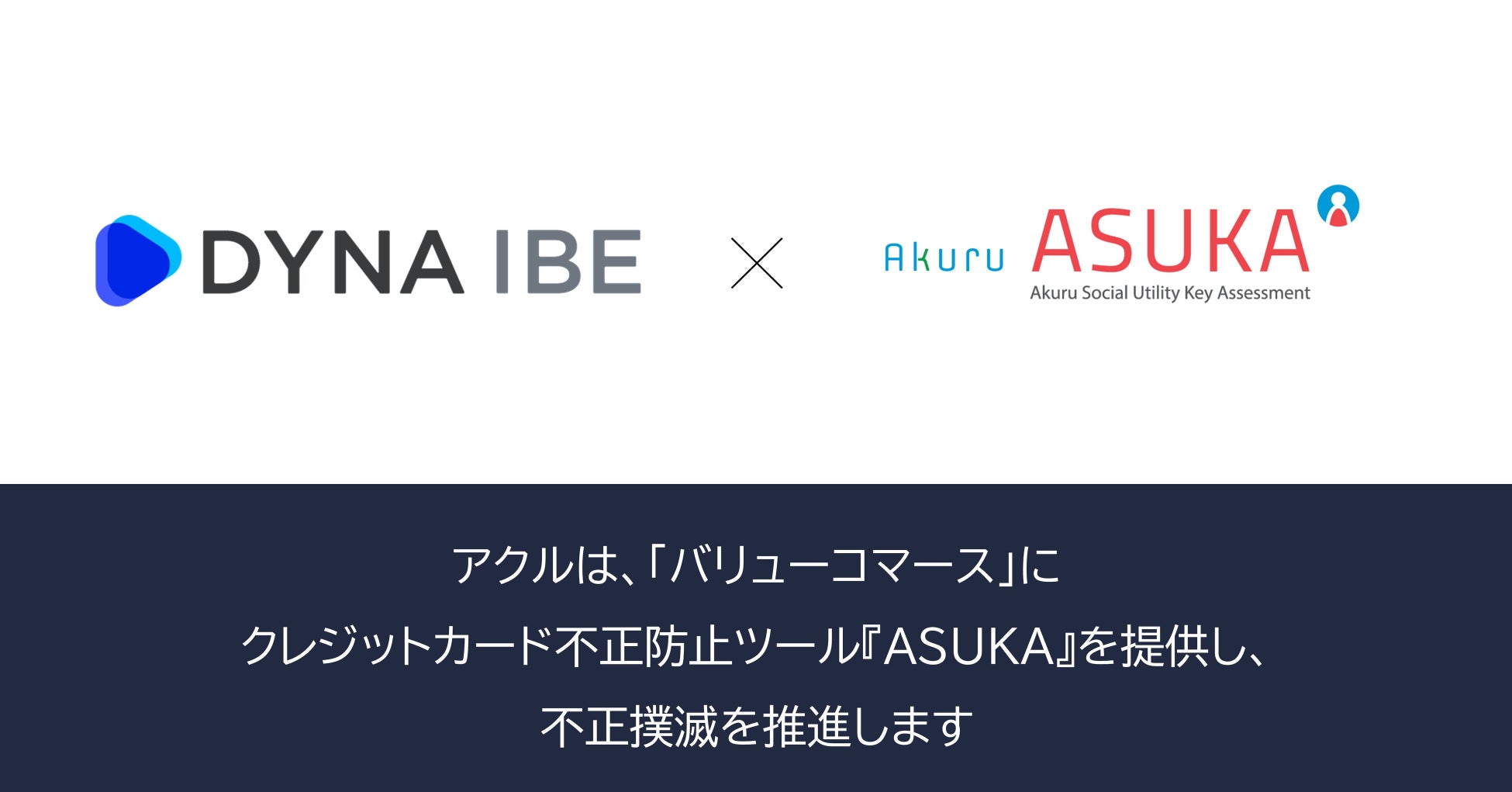 クレジットカード決済などの不正利用対策ソリューションを提供する株式会社アクル(本社:東京都港区、代表取締役社長:近藤 修、以下「アクル」)は、バリューコマース株式会社(本社:東京都千代田区、代表取締役社長 最高経営責任者:香川 仁、以下「バリューコマース」)が運営する宿泊予約システム『DYNA IBE(ダイナ アイビーイー)』への不正検知・認証システム「ASUKA」の提供を開始しました。