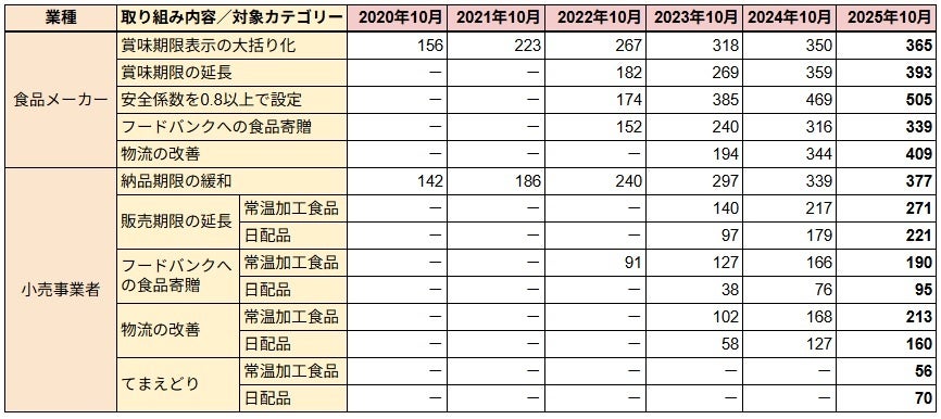 2025年度から新たに「てまえどり」が追加に。食品メーカー、卸、小売り企業が進める食品ロス削減のための8つの見直しが進展。