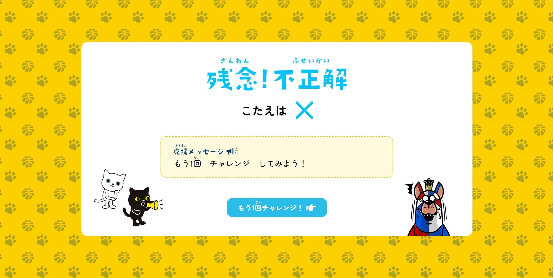 子どもたちが「ゴーディー」やヤマトグループのキャラクター「クロネコ・シロネコ」の応援をうけ、全問正解を目指すような工夫を施しています。