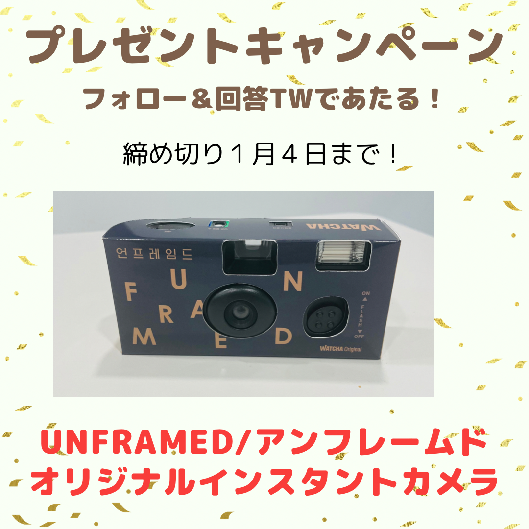 Twitterフォローと回答リツイートであたる「UNFRAMED/アンフレームド」オリジナルインスタントカメラ プレゼントキャンペーンも開催(詳細は下記ウェブサイトを参照ください)。