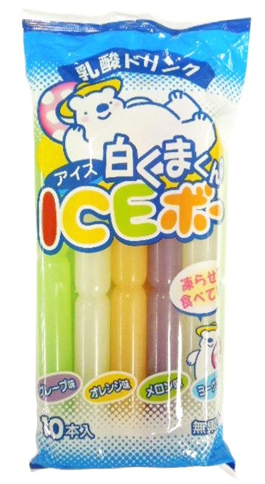 商品特徴:グレープ・メロン・オレンジ・ヨーグルト味の4種が楽しめる乳酸系の棒ジュース。