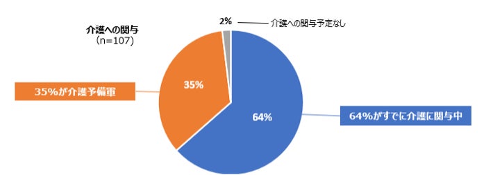 「全国ビジネスケアラー会議」の参加者ということもあり、介護への関与は非常に高く、2/3がすでに介護に関与しており、残り1/3が今後介護が想定される「介護予備軍」となっています。
