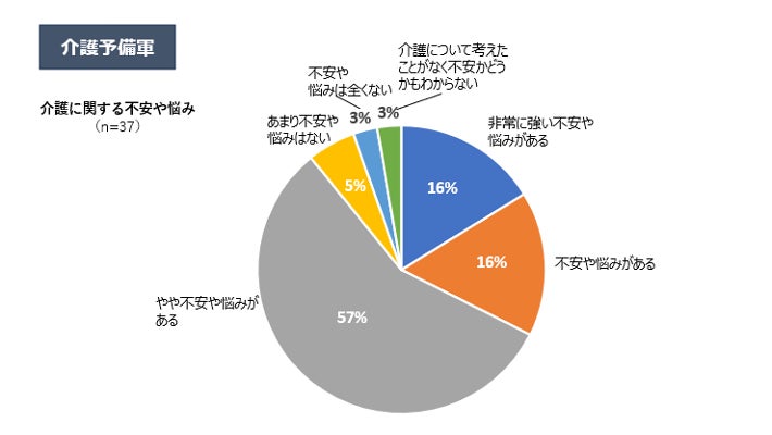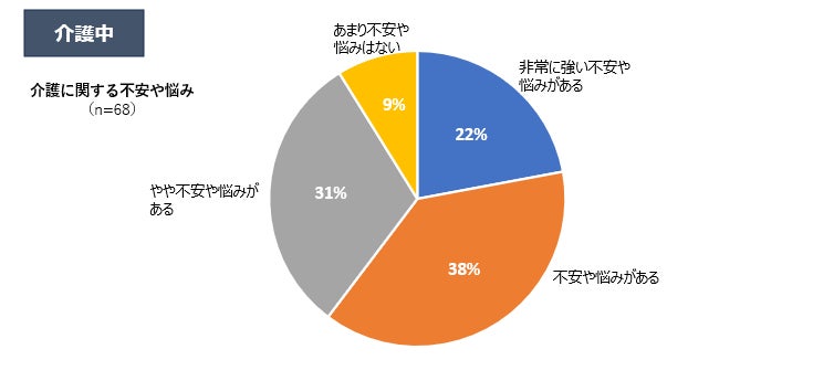 一方、今後介護に直面することが想定される「介護予備軍」の人たちも、やはり約9割が何らかの不安や悩みを抱えていると回答しており、「介護中」の人たちと同様、不安や悩みを抱えながら日々生活しているといえます。