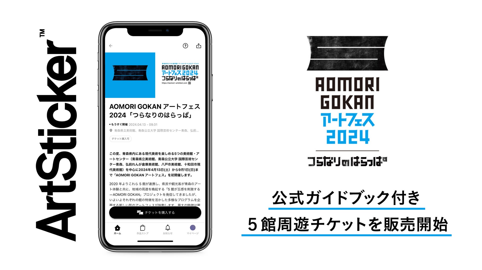 株式会社The Chain Museum(本社:東京都渋谷区、代表取締役:遠山正道、以下「The Chain Museum」)は、2023年4月13日(土)より開催する、青森県内にある現代美術を楽しめる5つの美術館・アートセンター(青森県立美術館、青森公立大学 国際芸術センター青森、弘前れんが倉庫美術館、八戸市美術館、十和田市現代美術館)を中心に開催される「AOMORI GOKAN アートフェス」にて、当社が運営するアート・コミュニケーションプラットフォーム「ArtSticker(アートスティッカー)」のチケット販売システムを導入開始いたしました。