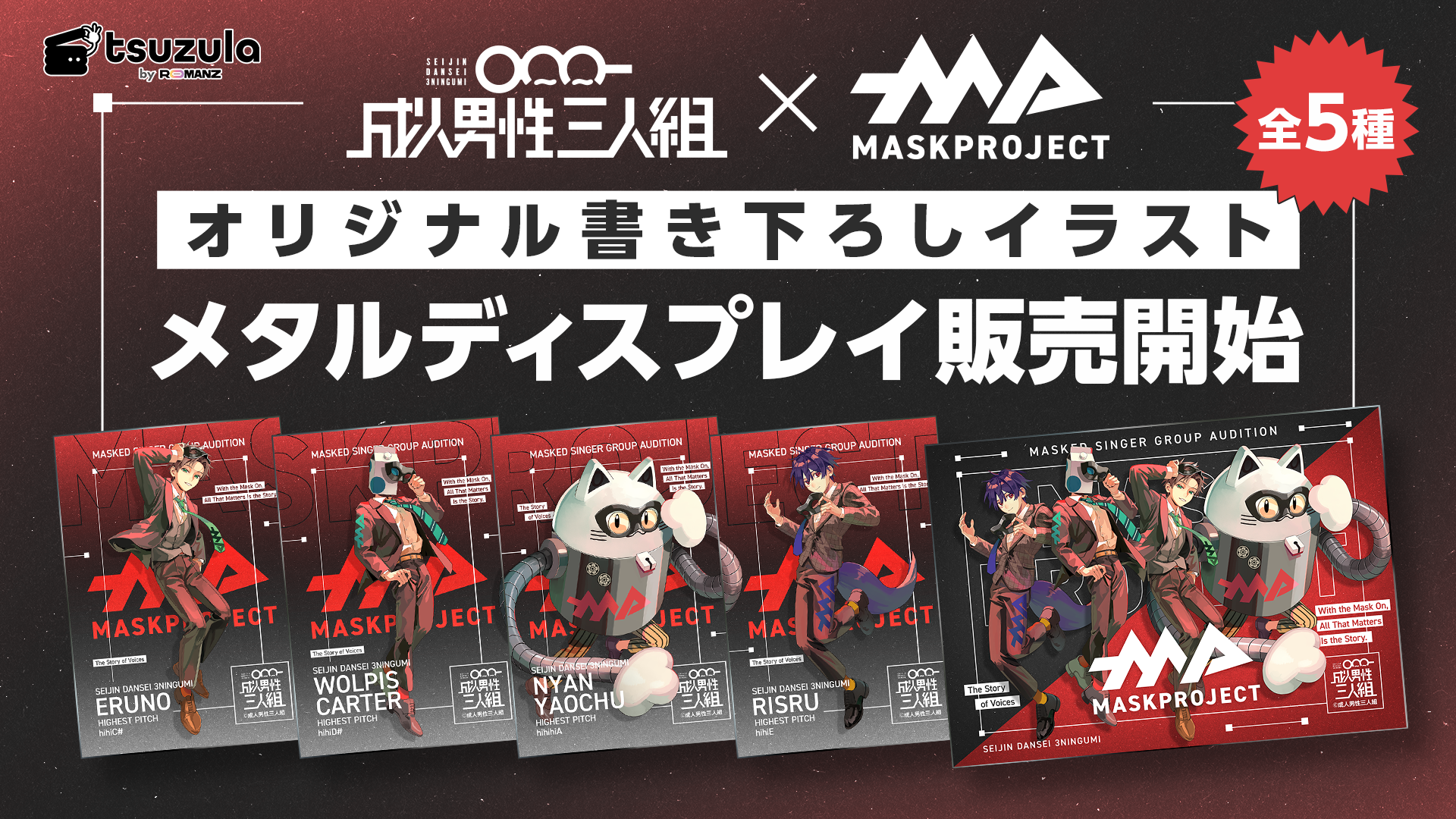 「MASK PROJECT」の配信開始に合わせて、「成人男性三人組」と「MASK PROJECT」のコラボレーションによるオリジナルグッズを販売中です!
