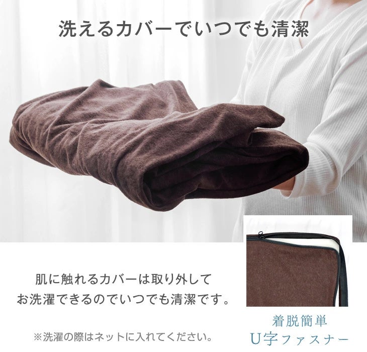 また、カバーは2種類からお選びいただくことができ、優しく温かみのある肌触りの〈パイル生地〉と通気性抜群の〈メッシュ生地〉がございます。どちらも取り外して洗濯することができるので、床置きの際に埃が気になる方も安心してご使用いただくことができます。