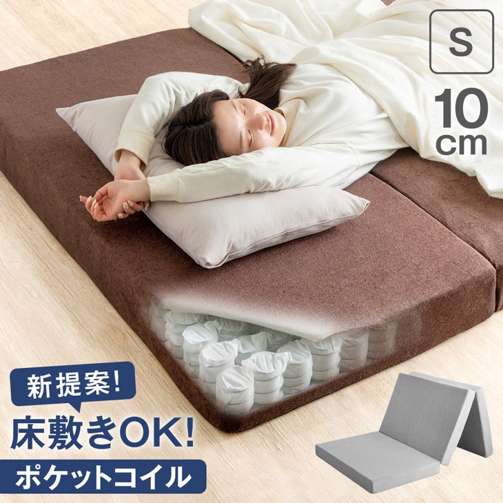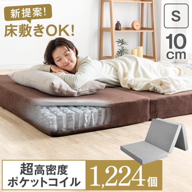 三つ折りで厚さ10cmとコンパクトなサイズ感ながらも、抜群の寝心地を実現しています。