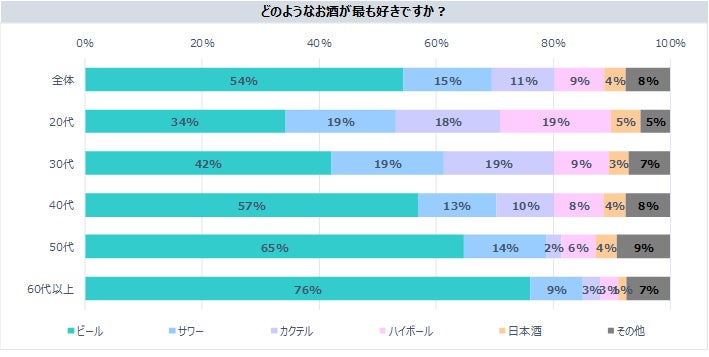 本調査ではこれ以外にお酒の購入量やビールから切り替えるお酒など年代別、性別、職業別、既婚・未婚別に集計しています。