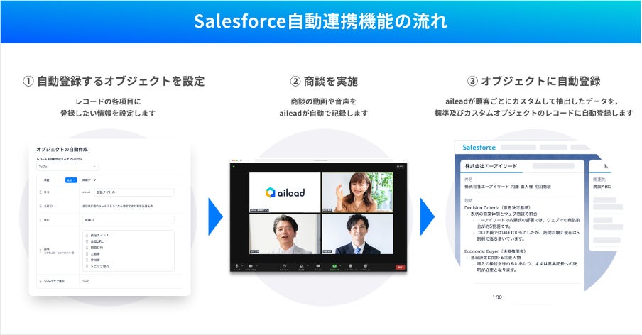 株式会社ailead(本社:東京都港区、代表取締役:杉山大幹)が提供する商談・面談解析クラウド「ailead(エーアイリード)」は、このたびSalesforceとの連携機能を大幅に強化しました。