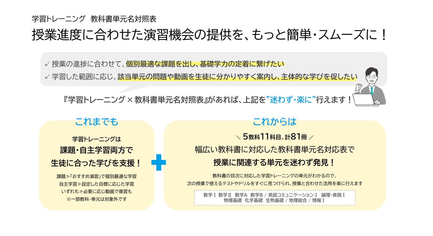 Classi、新授業連動サポートの第一弾として高校教科書単元名対照表を提供開始
