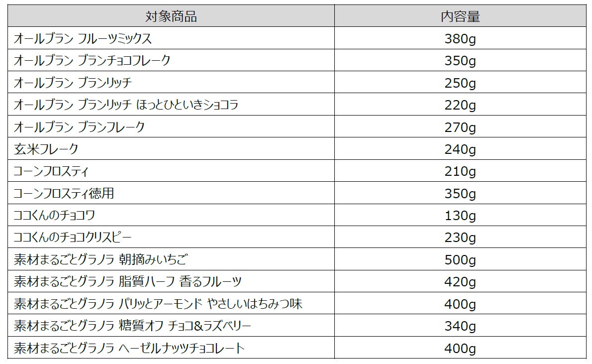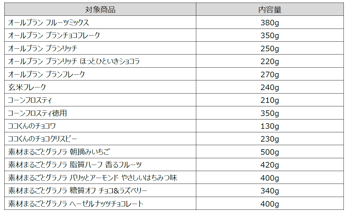 ケロッグ シリアル商品改定に関するお知らせ