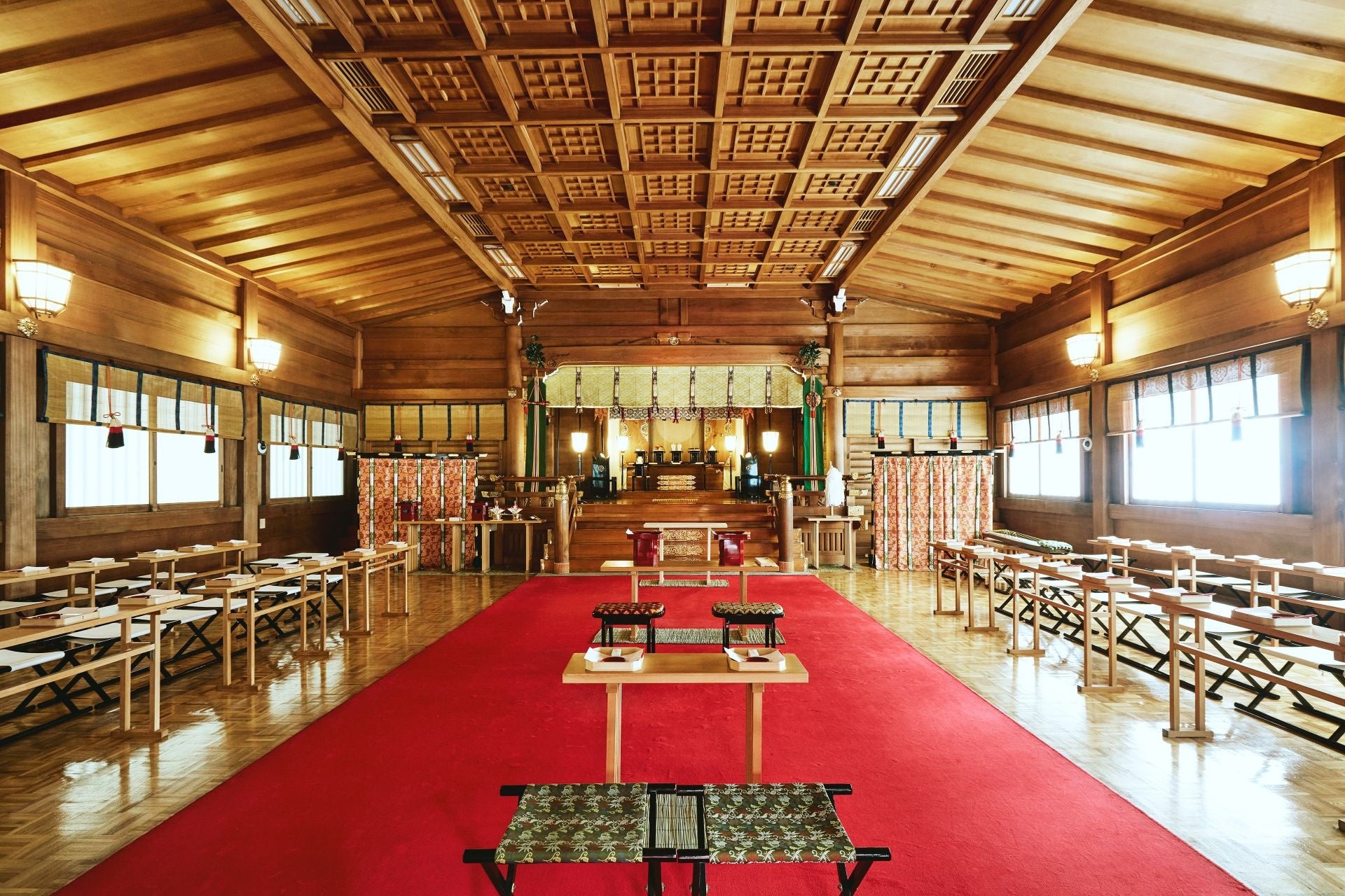 明治神宮と明治記念館の挙式会場は、建物のスタイルこそ異なりますが、挙式をご奉仕させて頂くのは明治神宮の神職と巫女です。正統派の神社婚を想起させる明治神宮の「奉賽殿」と、和装もウェディングドレスも映える現代的な「庭園の儀式殿」。対照的なデザインでも、神前挙式(神前結婚式・神前式)の本質を守り続けているからこそ選ばれる挙式会場です。