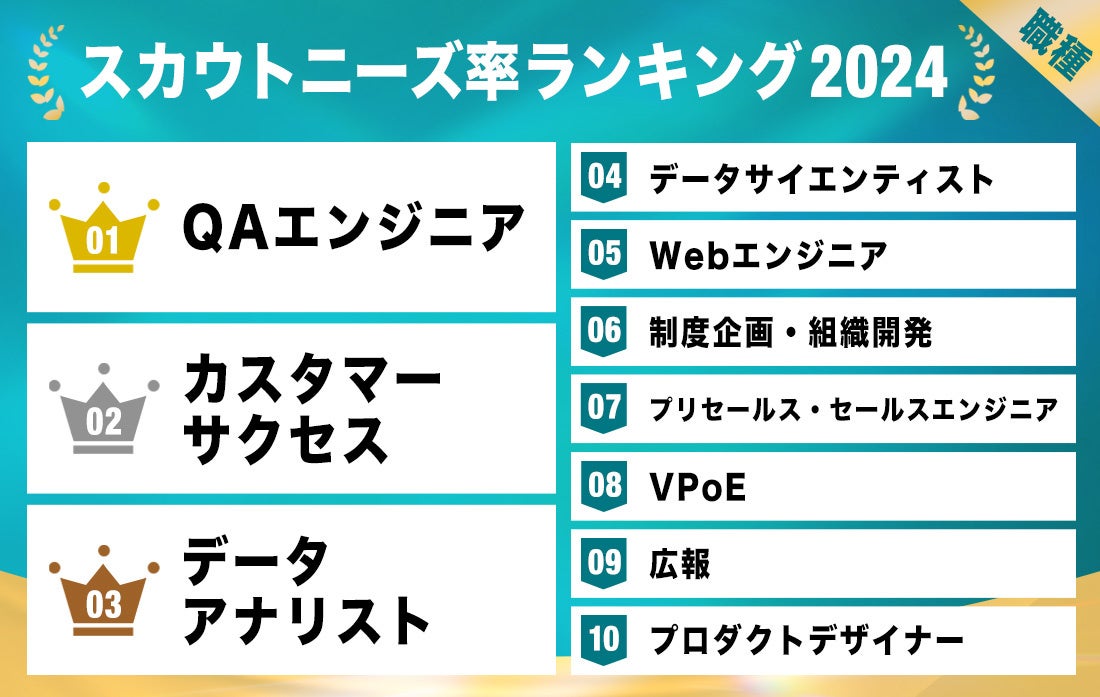 2024年のランキングは、多くの企業が進もうとしている方向性を象徴する結果となりました。QAエンジニアやデータアナリストなどの専門性が高い職種が上位にランクインしたことは、テクノロジー活用やデータドリブンな意思決定が企業戦略の中核になっている現状を表しています。また、カスタマーサクセス職が引き続き注目されている点や、制度企画・組織開発のように中長期的な組織強化を担う職種の台頭も、企業が持続的な成長を目指していることを反映していると言えます。