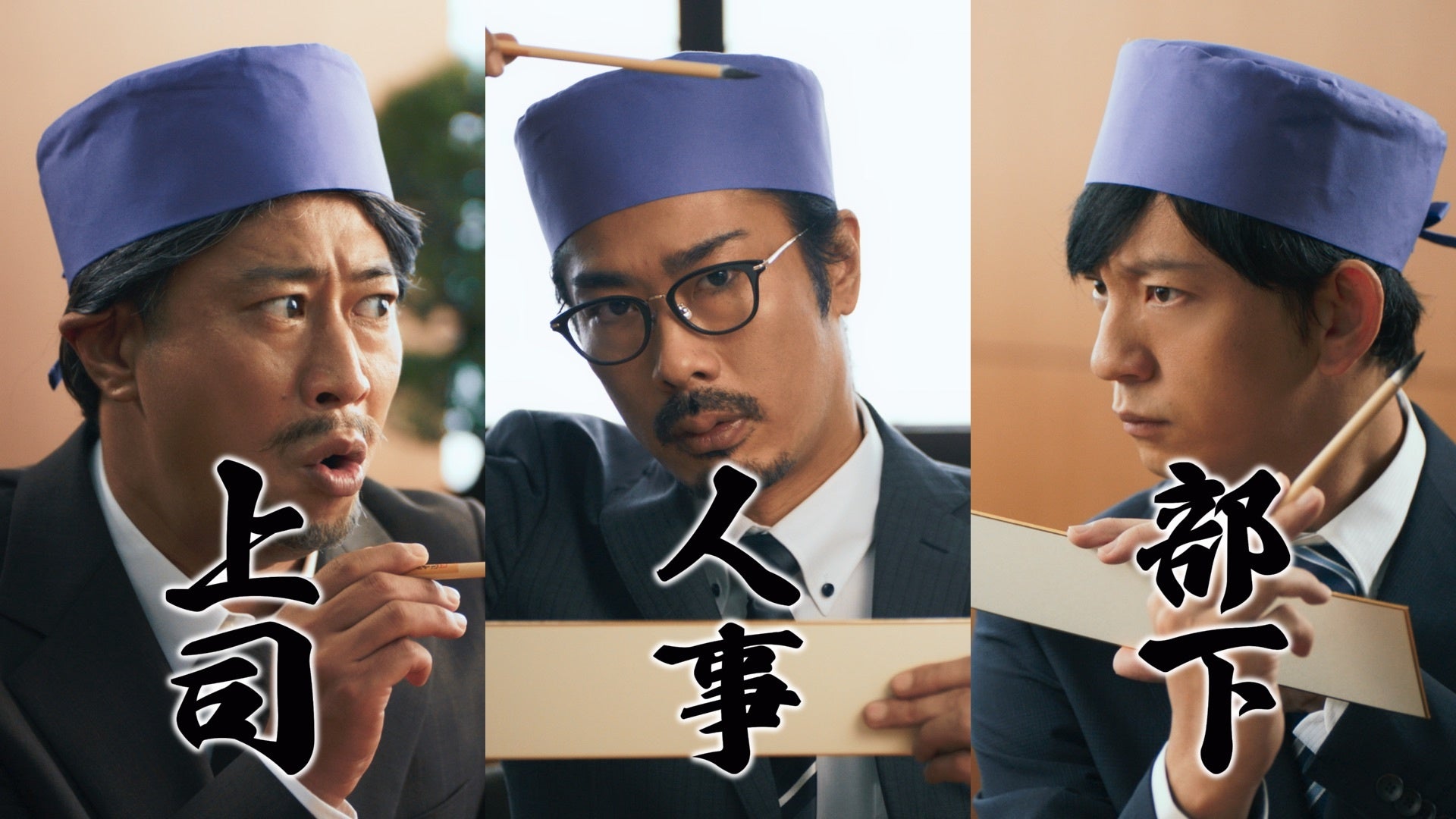 CMではメンバーが上司・部下・人事役を演じ、立場が違うそれぞれの本音を川柳でかけあうストーリーです。